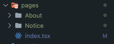 → ๋ฃจํธ ํ์ด์ง์ธ index.tsx์ธ notice, about ํด๋ ๋ฑ์ด Route๊ฐ ๋๋ค ex) /about , /notice